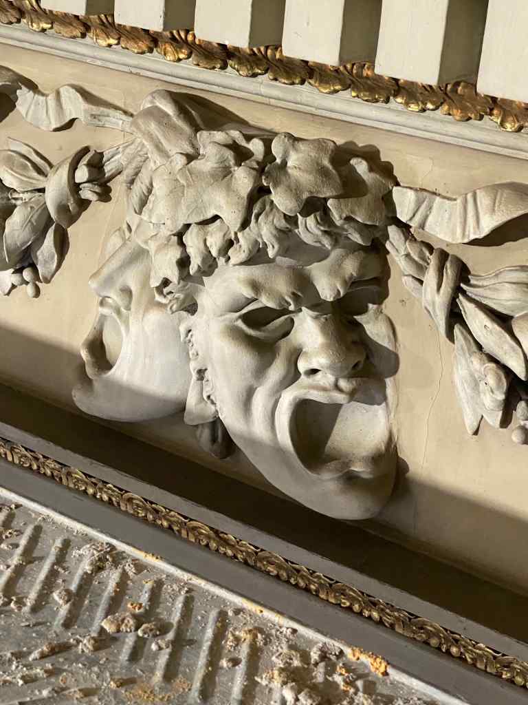 Der schon etwas abgeschlagene Stuck in unserer Loge.