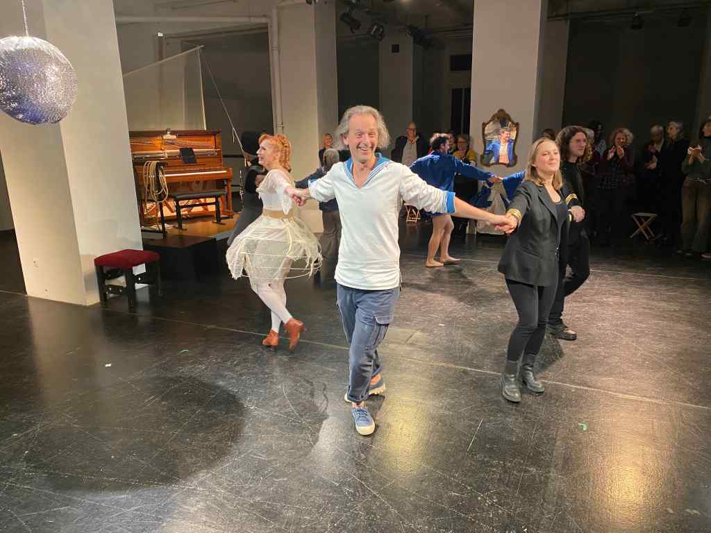 Cerha wird vom Publikum (vielleicht 80 Menschen) zu Recht beklatscht, ebenso wie alle Teilnehmenden. Zum Schluss, aufgefordert von den Akteur:innen, löst sich alles im Tanz mit dem Publikum auf, an dem, Gott bewahre, ich auch teilnehmen musste.