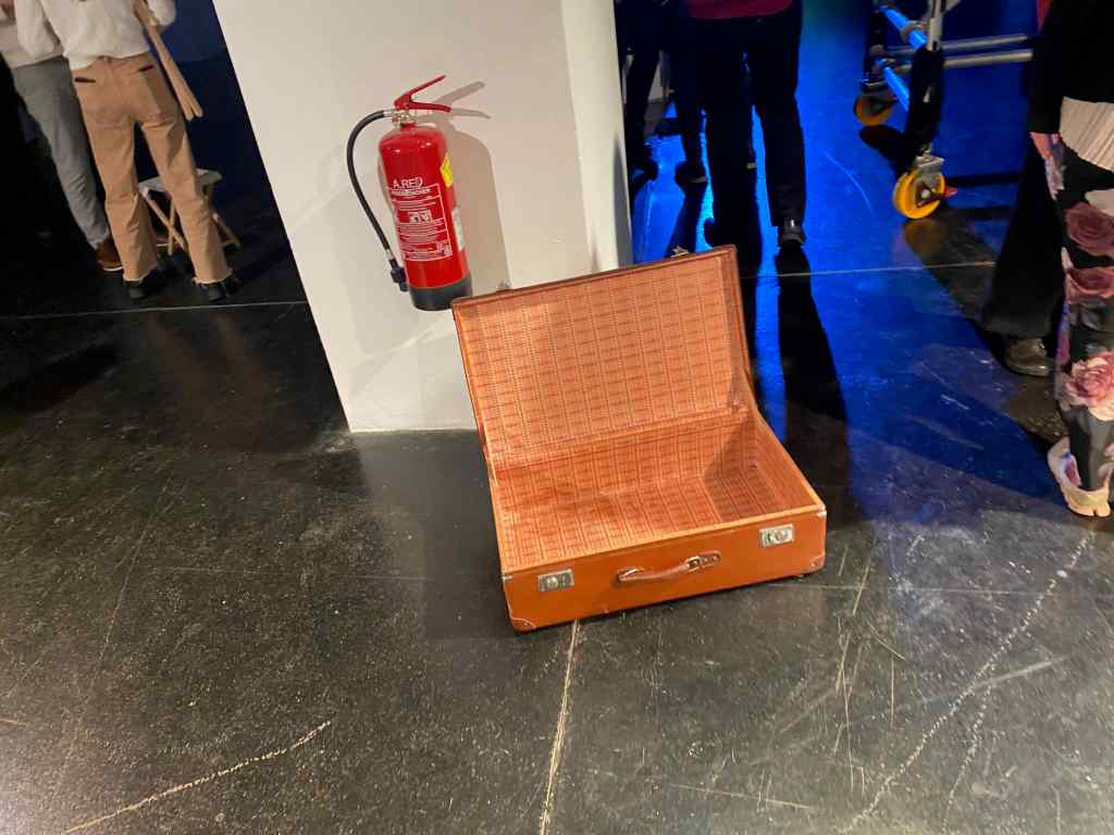 Cerha, Komponisten, Darstellerin, Regisseurin, Texterin in einer Person, geht „Die Nacht …“ als Stationentheater an. Im Zentrum ein Klavier, das auf einem fahrbaren Podium nach Beendigung eines Stücks durch den Raum, um die Säulen geschoben wird, von Cerha selbst und einem grauhaarigen Mann, beide in matrosenähnlicher Kleidung. Das Publikum, teilweise ausgestattet mit Klapphockern (vielen Dank, liebe Veranstalter) kann und darf folgen, wenn es will und sich immer wieder neu platzieren – oder auch nicht. Aber alle folgen der Möglichkeit, sich zu bewegen und das Ganze aus einem anderen Winkel zu sehen. Zwei Tänzer:innen, eine Pianistin, ein Klarinettist, zwei Sängerinnen tragen das Werk vor. Die Musik ist leicht atonal, aber für heutige Verhältnisse harmonisch, mitunter melancholisch, die Stücke, acht Lieder, eine Ouvertüre und anderes, sind vergleichsweise kurz, das gesamte Werk hat aber doch eine Länge von rund 70 Minuten und zieht das Publikum durchaus in seinen Bann als Gesamtkunstwerk. Durch die intensive Darbietung der Tänzer:innen (noch nie haben wir Tanz aus einer derartigen körperlichen Nähe erlebt, nur Zentimeter entfernt, und zum ersten Mal die unglaubliche physische Anstrengung der Tänzer:innen realisiert); durch das Fesselnde der Musik; den Gesang; die Beleuchtung. (Weniger durch die szenischen Hilfsmittel wie Koffer und Erde.) Das Stück erschließt sich kaum aufgrund seiner Darbietung, das Motiv der Reise und der Zusammenhang mit der Vergänglichkeit bzw. dem Vergehen des Lebens wird deutlich, aber alles Weitere muss erlesen werden, was der Sogkraft der Aufführung aber keinen Abbruch tut.