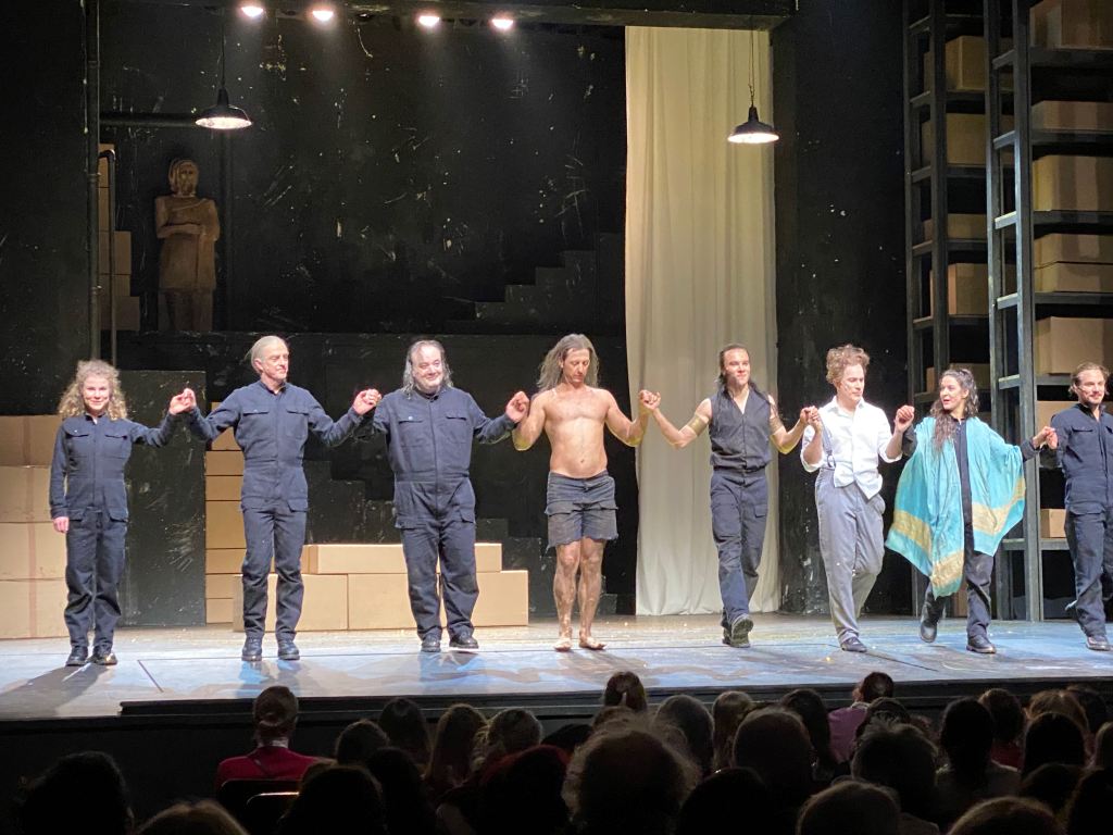 Wie es zu diesem Sinneswandel kommt, bleibt im Stück von Michael Schachermaier, der auch inszeniert hat, leider unklar. Als Zuseher:in bekommt man das Gefühl, dass es etwas mit Enkidus Tod zu tun haben muss, aber was? Dreiers Darstellung von Gilgamesch ist leider zu wenig variabel, zu wenig differenziert, um diese Wandlung einleuchtend zu machen, aber so ist das wohl bei Stücken für die Zielgruppe ab 6 Jahren.